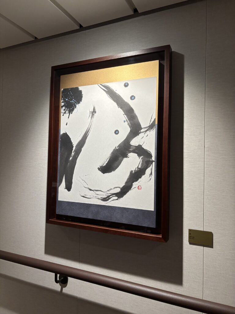なぜなら、この素晴らしい船の空間に、私の書作品【祈】が飾られているからです。作品を直接見るのはもちろん、船のクルーの方々から「多くのお客様が足を止めてご覧になっています」とお声がけいただき、胸が熱くなりました。