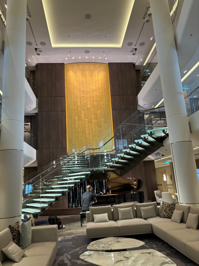 「飛鳥III」といえば、日本の美意識と技術の粋を集めた、まさに海に浮かぶ最高級ホテル。その船内に一歩足を踏み入れた瞬間、私はある種の感動と興奮に包まれました。